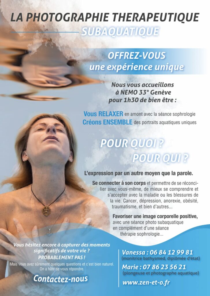 Favoriser une image corporelle positive, avec une séance photo subaquatique en complément d’une séance thérapie sophrologie…